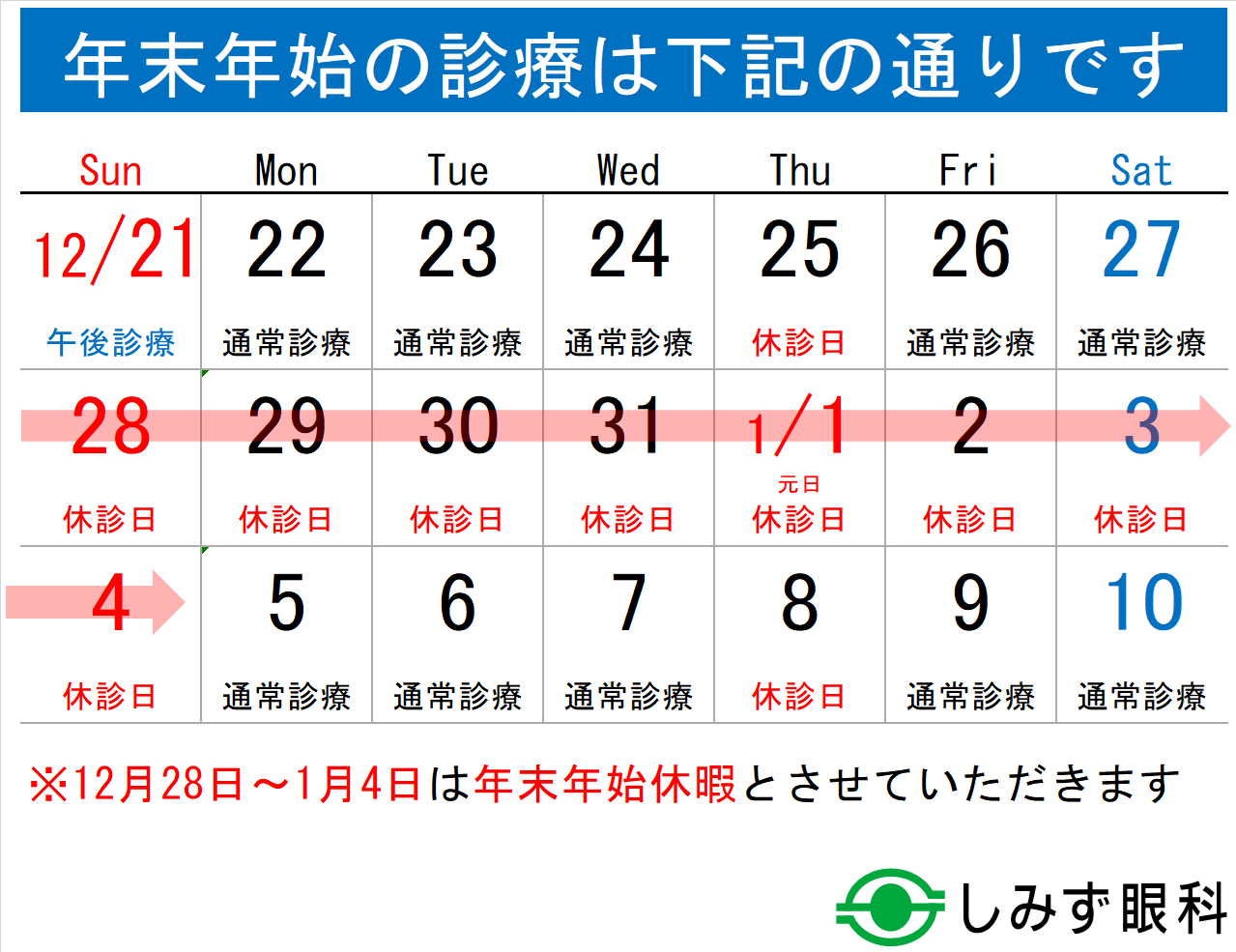 年末年始の診療について