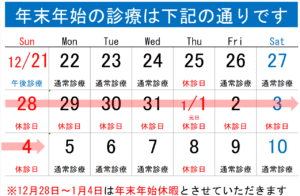 年末年始の診療について