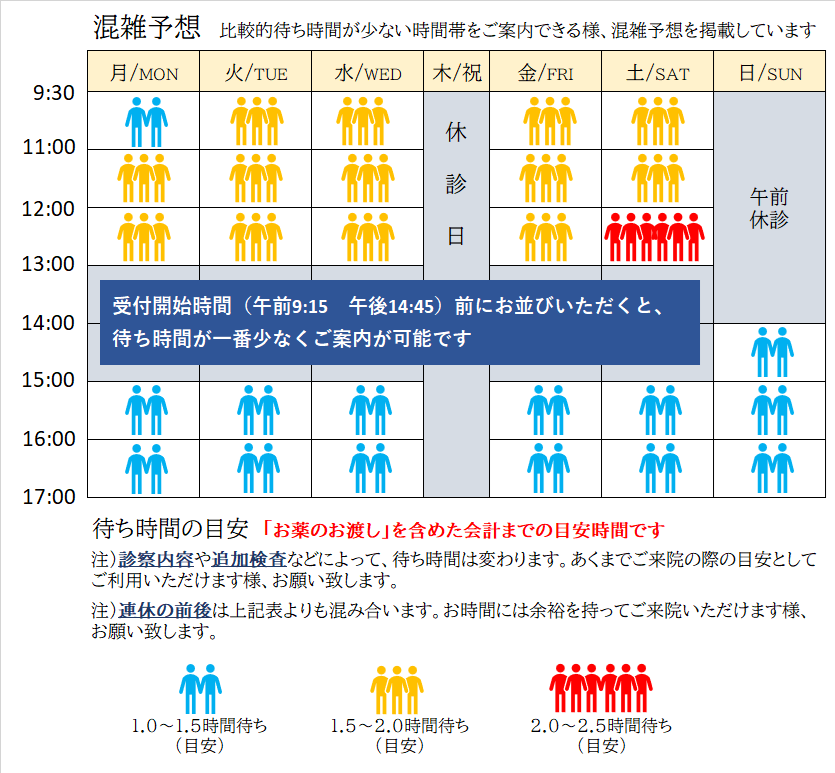 土曜日:午後5時まで診療